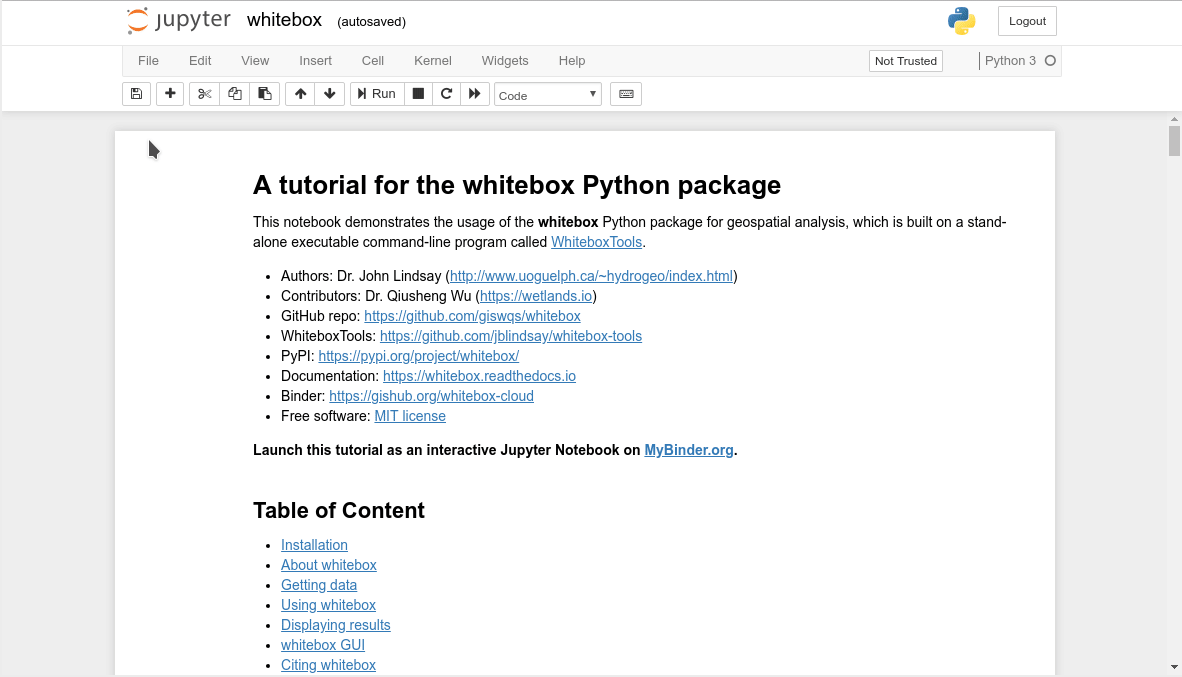 - GitHub repo: https://github.com/opengeos/whitebox-python